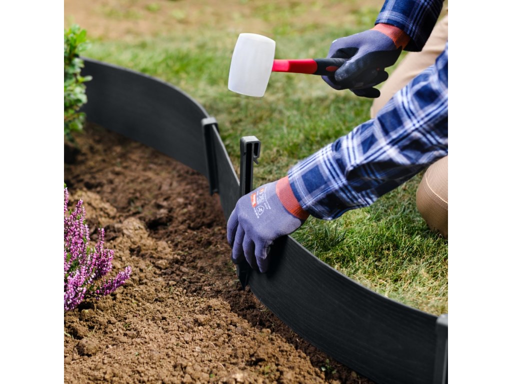 Die Montage der Einfassung erfolgt durch Einschlagen von Erdnägeln in den Boden. Die Länge des Befestigungsnagels beträgt 24,5 cm, was unabhängig von der Bodenbeschaffenheit eine maximale Haltbarkeit gewährleistet.