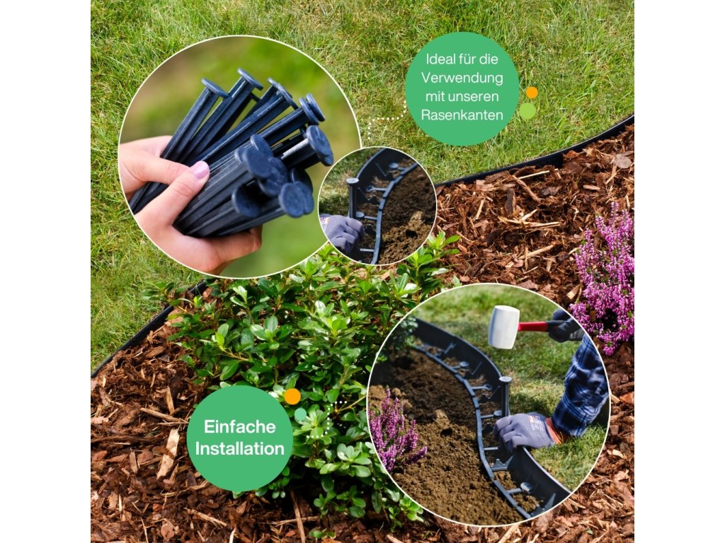 Die Kunststoffanker sind ein kleines, aber unverzichtbares Element für stabile Garten-Rasenkanten. Halten Sie Ihre Linien sauber und fest – egal ob Sie gerade Wege, runde Beete oder kreative Gartenpfade gestalten! 🌱