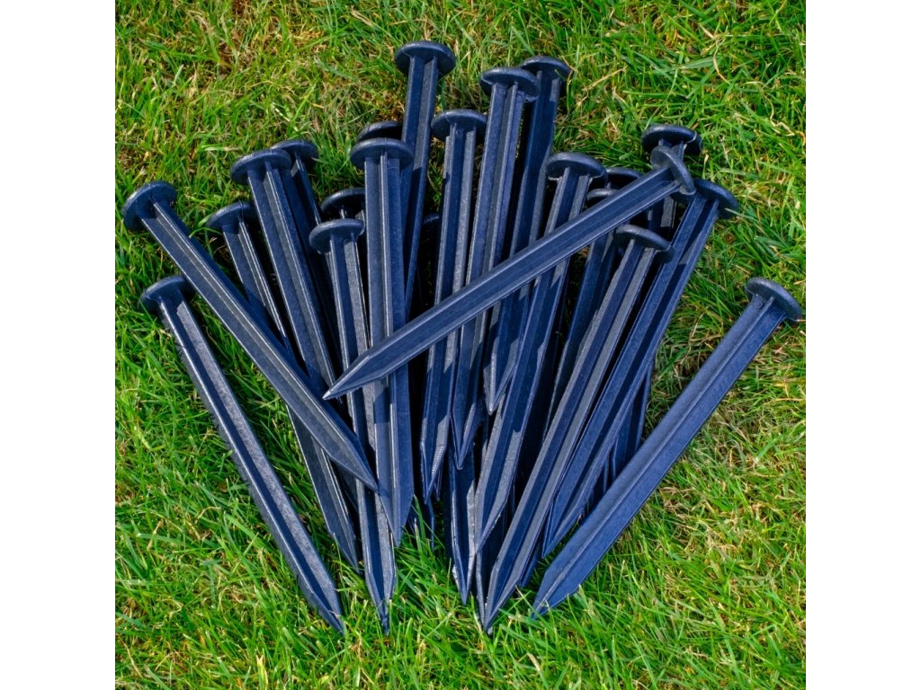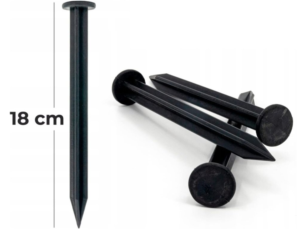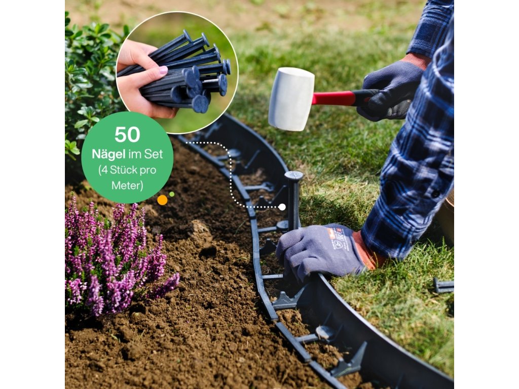 Kunststoffnägel für Rasenkanten – stabil, widerstandsfähig und umweltfreundlich. Sorgen Sie mit hochwertigen Erdnägeln aus recyceltem Kunststoff für maximale Stabilität Ihrer Rasenkanten. Dank ihrer Länge und Konstruktion halten sie die Rasenkanten auch in schwierigem Gelände fest an ihrem Platz. Die Packung enthält 50 Stück.
