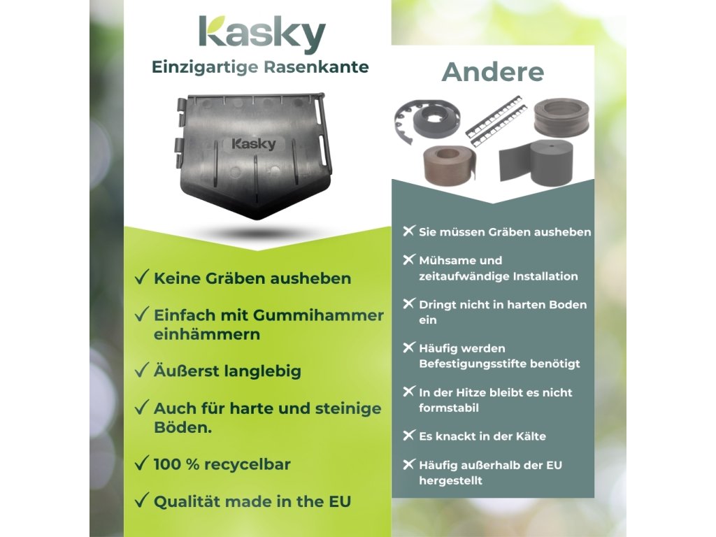 Wenn Sie eine schnelle, robuste und zugleich unauffällige Lösung suchen, um Ordnung und Struktur in Ihrem Garten zu bewahren, sind KASKY die perfekte Wahl. 🌱