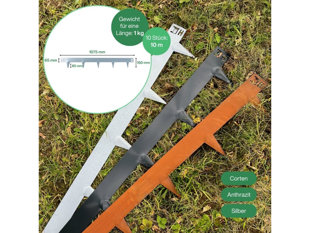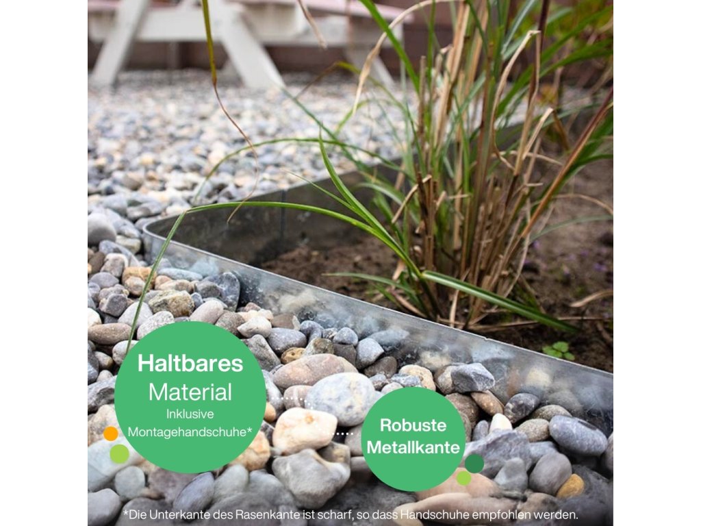 - ROBUST UND QUALITÄT - Diese Rasenkante mit einer Höhe von 150 mm und einer Dicke von 1,6 mm ist eine hochwertige, flexible Stahlkonstruktion. Dieses Metall Material gewährleistet die Haltbarkeit und Langlebigkeit dieser Metall Beetumrandung. Es ist eine robuste Lösung für verschiedene Anwendungen zur Garteneinfassung.