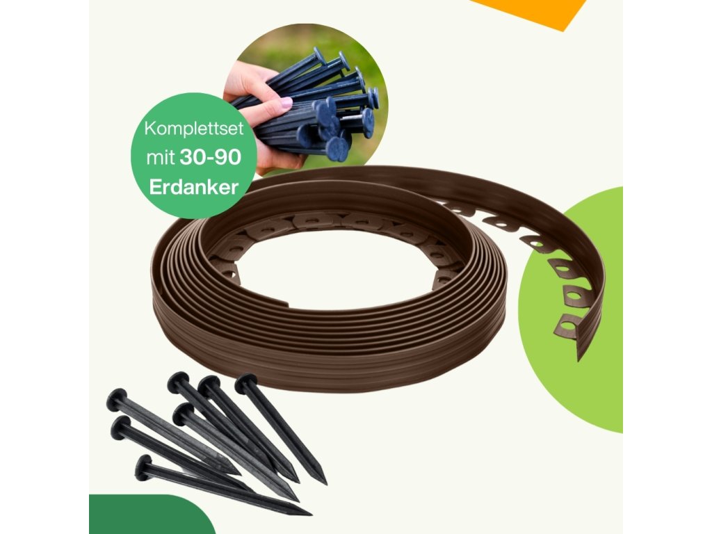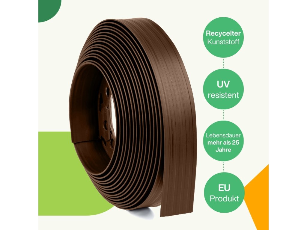 Rasenkante Kunststoff SMART – Braun, Höhe 5 cm, Länge 10–30 m (Spar-Sets)