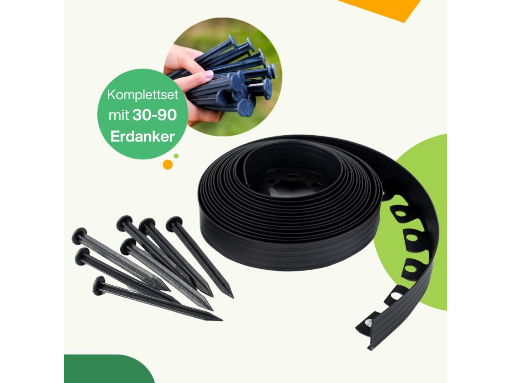 Rasenkante Kunststoff SMART – Schwarz, Höhe 5 cm, Länge 10–30 m (Spar-Sets)